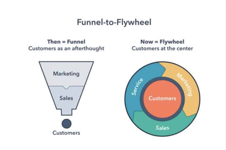 The marketing funnel has one major flaw: It views customers as an afterthought, not a driving force. Today, with the rise of social media customer referrals and word-of-mouth have become the largest influence on the purchase process. Let me introduce you to the Flywheel model, invented by James Watt.