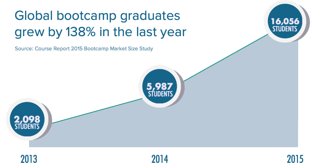 Meanwhile, a coding bootcamp graduate will be working for an average of 2-3 years more than a CS degree graduate (assuming they both started their course at the same time). Any perceived disadvantage a bootcamp graduate has is negated by their time advantage!