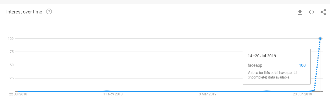 According to Google trends, interest for the search term βfaceappβ peaked on 17th July 2019, worldwide.
