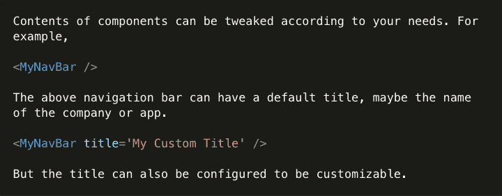 ReactΒ offersΒ reusableΒ components,Β whichΒ meansΒ thatΒ theΒ HTMLΒ thatΒ weΒ writeΒ inΒ ReactΒ areΒ allΒ potentiallyΒ reusable,Β thusΒ reducingΒ theΒ amountΒ ofΒ code neededΒ significantly.